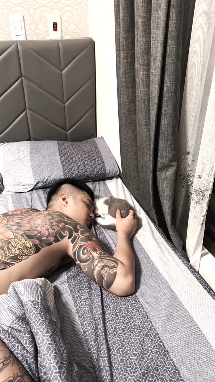 剛到新家的小寶貝~就跟把拔睡再一起真可愛